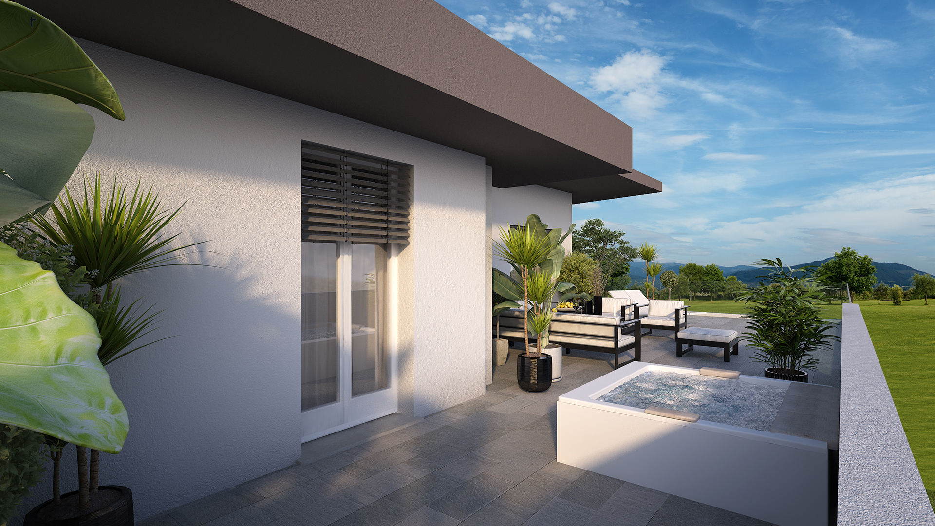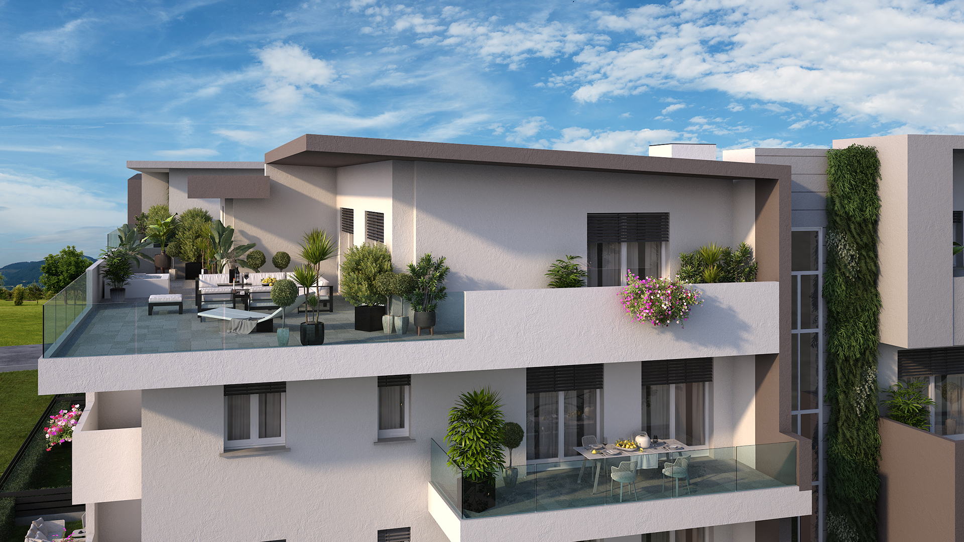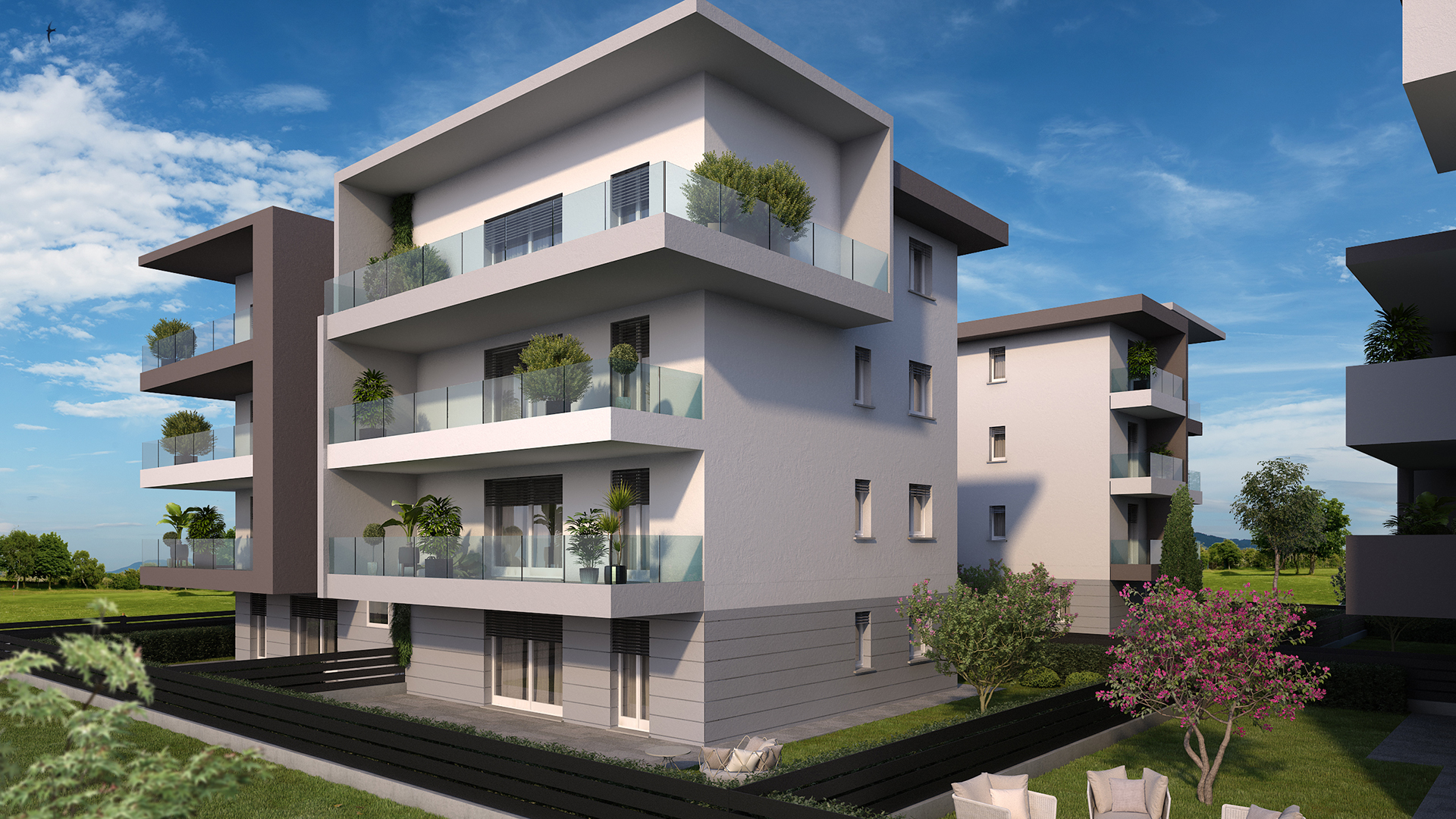 Modernità ed eleganza caratterizzano le residenze “3HOUSES”. Il complesso formato da tre edifici, progettato con un’architettura moderna ed armoniosa, è caratterizzato da spaziose vetrate che rendono gli ambienti luminosi, da ampi giardini al piano terra e da grandi terrazzi ai piani superiori che permettono, con riservatezza, di godere al meglio degli spazi esterni. Tre edifici residenziali con diverse soluzioni abitative, Trilocali o Quadrilocali e Attici con terrazzi di grandi dimensioni. Gli edifici sono disposti su quattro piani fuori terra, oltre ad un piano interrato in cui sono localizzati i box auto, le cantine ed i locali tecnici comuni al complesso. Le parti comuni dell’edificio saranno curate con materiali di pregio.